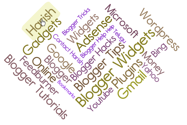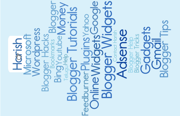 Hi! Firstly, I wishing You a very Happy New Year. Yes,a new blogger widget in front of you. Have you seen Wordle word Cloud? This widget is similar to Wordle word cloud called as FatCloud. With this widget You can show your labels as wordle word cloud in Different formats. This Widget is Flash based and it Generates Label Cloud(FatCloud) automatically.